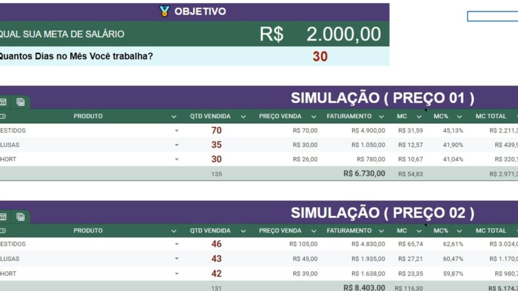 A planilha foi desenvolvida para roupas, mas os conceitos de precificação servem para qualquer produto físico que você revenda.